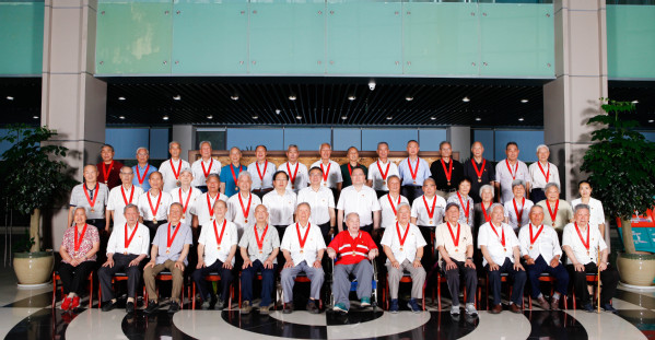活动结束后,与会校领导和获奖的老党员们合影留念。