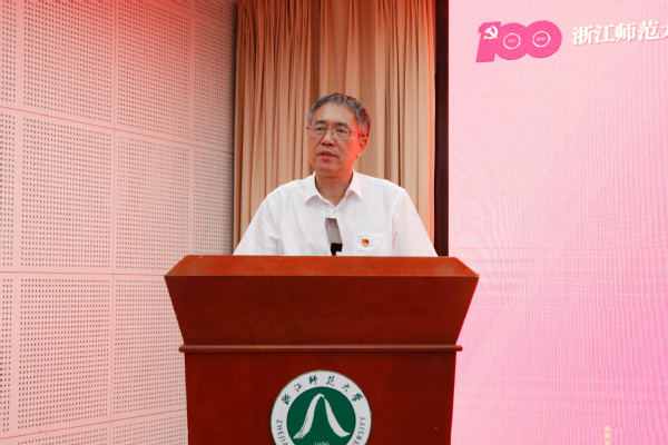 蒋国俊首先代表校党委,向获得“光荣在党50年”的91名老党员代表表示诚挚的问候、致以崇高的敬意。百年风雨洗礼,老党员早已将红色基因融入血脉。他指出,各位老党员,既是国家经济社会发展的见证者、推动者,也是学校事业发展的建设者、奉献者。老党员们五十载如一日的初心使命历久弥新,是党和国家发展的脊梁,是学校发展的动力,更是年轻党员奋勇前行的榜样。同时,蒋国俊也衷心希望广大老党员能够继续发挥先锋模范作用,始终保持忠诚品质,奉献新时代,弘扬正能量,一如既往地为学校高质量发展贡献智慧和力量。
