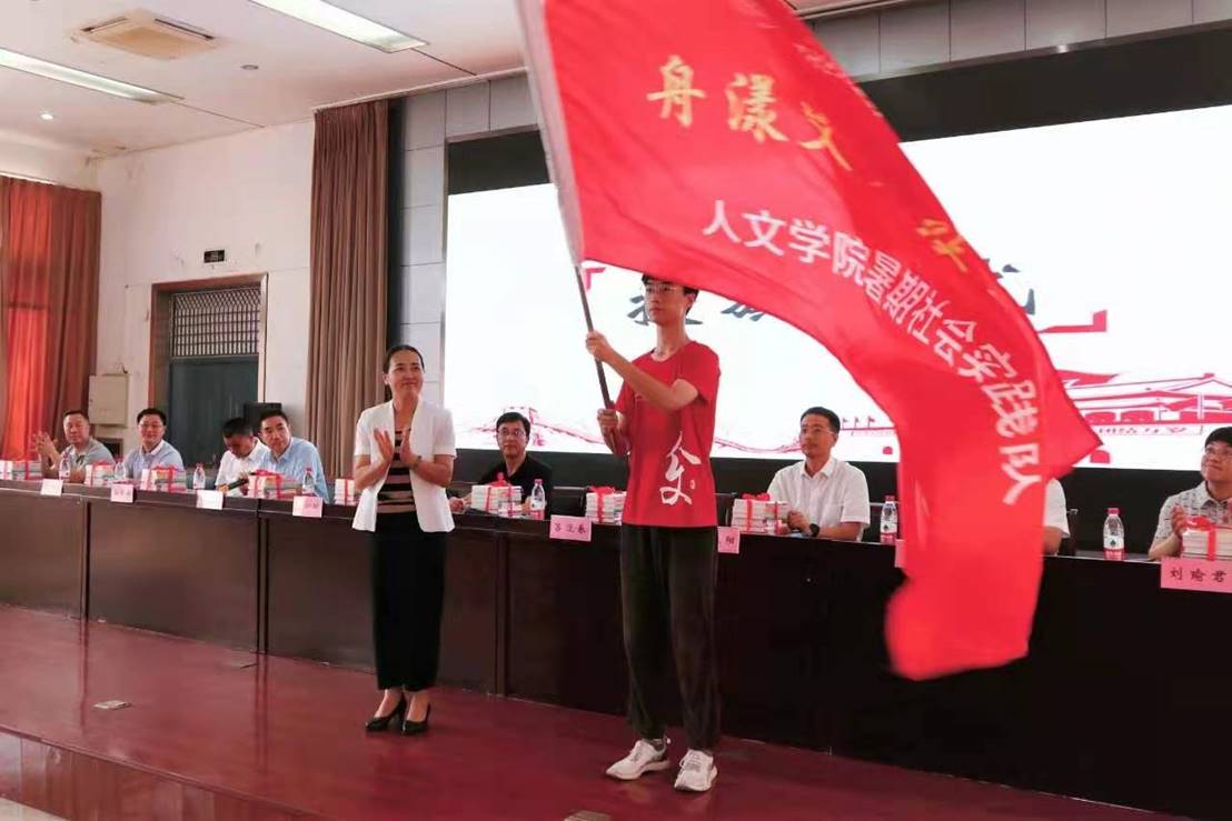 吕迎春为暑期社会实践队授队旗