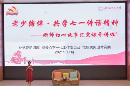 百年栉风沐雨度险隘,今朝奋发不辍创辉煌。为深入学习贯彻习近平总书记在庆祝中国共产党成立100周年大会上的重要讲话精神,丰富党史学习教育形式,坚持党史学习教育走深走实。11月7日上午,校党委组织部、校关心下一代工作委员会和校机关离退休党委在行政楼报告厅举办了“老少结伴·共学七一讲话精神——浙师初心故事汇党课开讲啦”活动。