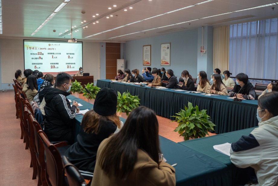 会议伊始,全国“百个研究生样板党支部”创建单位——教师教育学院教育技术学硕士生党支部书记,从支部概况、支部制度、支部重点工作等3个方面详细介绍了支部创建情况。该党支部始终秉持“抓党建促成长、以成长强党建”理念,着力推进党支部建设与青年学生成长同向发力、同步向前,以“技术团队、技术平台、技术资源、技术服务、技术纽带”五大活动载体,实现支部党建工作与学术科研、专业发展有效衔接和良性互动,有效推动支部高质量发展。