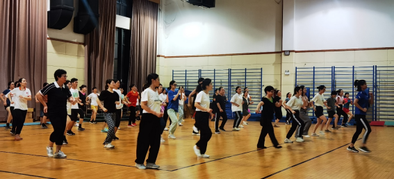 2021年9月27日,李慧老师在综合馆体操房开展教职工“活力”健身操培训