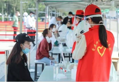 “请亮出健康码”“请佩戴好口罩”“请保持一米安全距离”“请到这边排队等候”……检测现场,党员志愿者们分工明确,维持检测现场秩序,引导参检人员进入核酸采样区,协助医护人员进行信息登记。一位志愿者说:“作为一名志愿者,能为疫情防控做出自己的贡献,我觉得很有意义。”