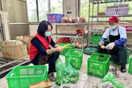 后勤保障部各中心党支部志愿者穿上红马甲,参与餐饮供应、维持秩序、物资搬运等工作,充分发挥先锋模范作用,筑起党群同心、联防联控的红色堡垒。