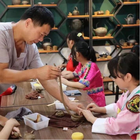 7月14日,实践队联合金东区委统战部、民族团结进步促进会举行非遗体验活动,夏令营学生与杨家小学少数民族学生一起,在沉浸式黑陶制作活动中紧密团结,感悟中华传统文化的魅力。