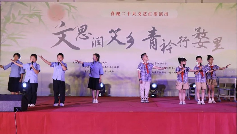 汇报演出上,夏令营成员、实践队员、傅村镇村民们联袂登台,表演了歌曲合唱《少年中国说》《魅力傅村》、拉丁舞表演《夏日拉丁》、古典舞表演《闲亭絮》、武术表演《中华精粹太极拳》、创意舞台秀《梦幻森林童话》、诗朗诵《跨越时空的对话》《艾乡承缘谱芳华》、诗歌剧《花木兰》、非遗表演《岳家拳》、小锣书表演《八大队歼敌记》、古典舞独舞《桃花笺》等节目,形式多样、内容丰富,共同呈现了一场精彩的晚会。