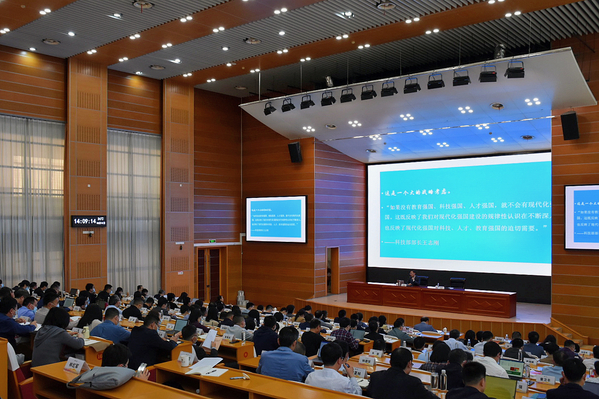 本次研讨班自2月27日开班,课程安排既有视频讲座、又有现场辅导,既有集中学习、又有分组研讨。各场辅导报告立意鲜明,从不同角度对党的二十大精神进行了全方位解读。3月10日下午,研讨班还邀请中国教育学会副会长、浙师大田家炳德育研究中心主任袁振国教授作《“教育、科技、人才”三位一体的战略意义与我们的使命》专题报告。集中自学期间,学员们静心研读原著原文,用心参悟原义原理。分组研讨环节,大家围绕主题,结合岗位实际深入思考,积极发言。整个研讨学习期间,大家态度端正,严格按照日程安排参加各环节的培训活动,遵守纪律,切实做到了中层干部轮训全覆盖,展现了学校干部队伍良好的精神风貌。