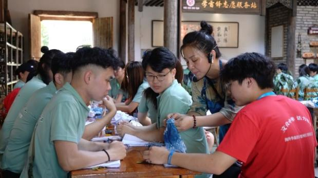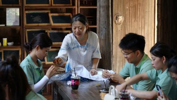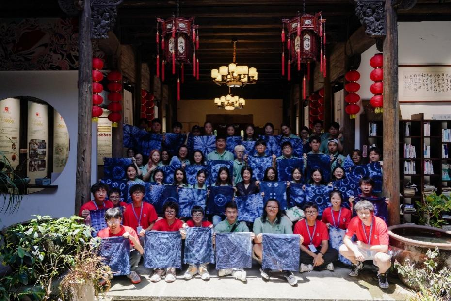 华裔青年们还在金华岩头村体验了扎染传统工艺,在当地手艺人的介绍和指导下,营员们亲手体验了从布料折叠、捆绑到染色、漂洗的全过程,感受扎染工艺之美。