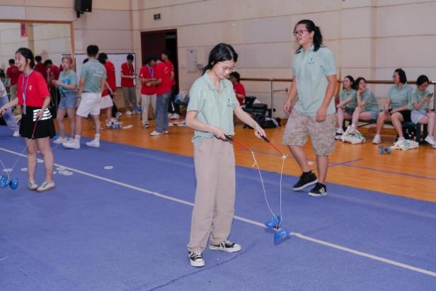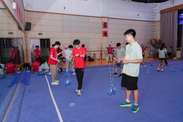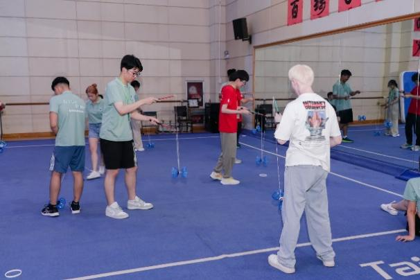 抖空竹是一项融合了音乐、舞蹈和杂技等多种艺术元素的体育运动。7月23日晚,在学校武术馆,华裔青年们学习了抖空竹体验了这项中华传统运动项目的魅力,并在老师的指导下了解了该项运动在不同地区的演变和发展。