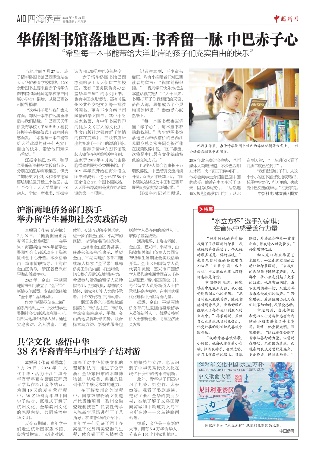 从历史到现代,从人文风光到自然景观,从参观学习到沉浸体验,“文化中华·活力浙江”海外华裔青年夏令营浙江师范大学营助力38名海外华裔青年全方面、多层次、立体化学习、体验家乡文化、浙江省情,展现了包容多元的金华、开放创新的浙江、真实全面的中国,华裔青年和中国学子也结下了深厚的友谊,他们表示将把自己的所见、所闻、所感讲述给家人、同学、朋友,共同传播中华文化。