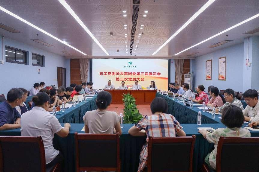 2024年10月18日下午,农工党浙师大基层委员会在校行政中心北楼302会议室召开第三届委员会第二次党员大会。金华市政协副主席、农工党金华市委会主委胡晓杭,浙江师范大学党委副书记傅关福,中共金华市委统战部常务副部长邵国龙,浙江师范大学党委委员、组织部、统战部部长王淑娉应邀出席会议。农工党金华市委会及农工党浙师大基层委员会全体党员30余人参加会议,农工党浙师大基层委员会副主委、浙师大人文高等研究院教授钟朝芳主持会议。